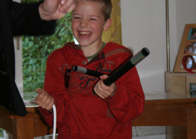 Beaucoup d’interaction entre le magicien et les petits spectateurs. Votre enfant aura également un petit souvenir « magique » de cet après-midi.