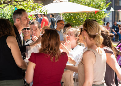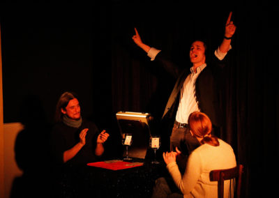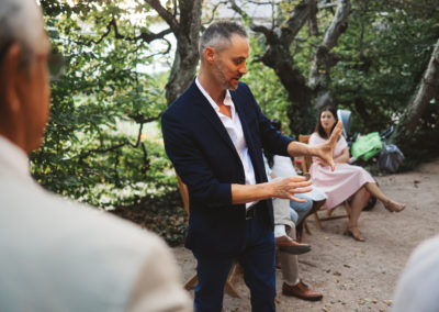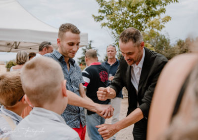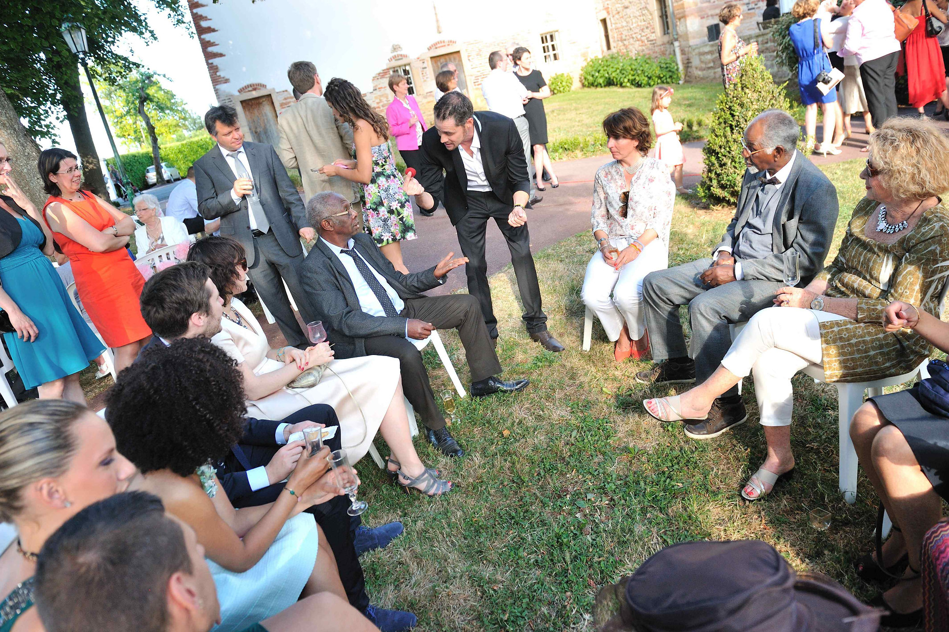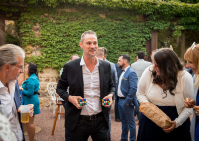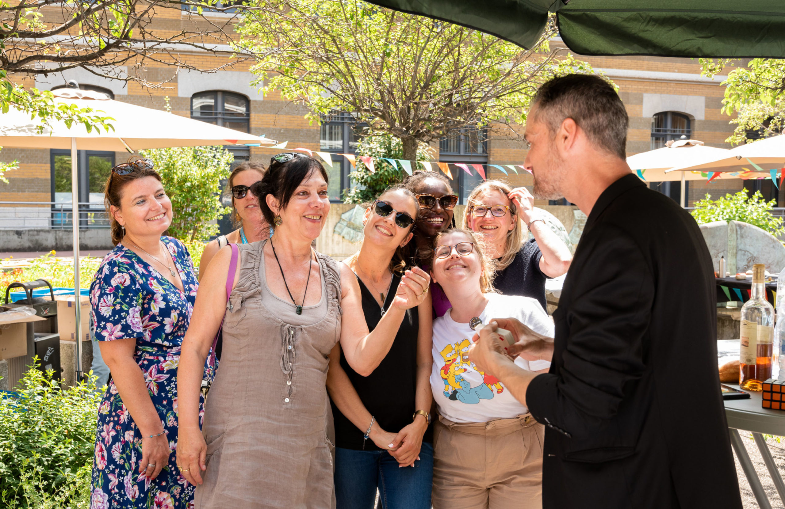 L’objectif est d’établir un lien entre vos convives et de créer une ambiance détendue. Les gens s’amusent, participent et en parlent entre eux après mon passage. Je passe de groupe en groupe afin d’offrir un spectacle particulier.
